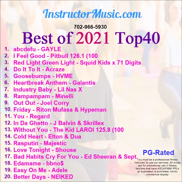 As we creep ever so closely to the end of the year, we wanted to look back at the best of 2021 on the Top 40/dance tip. All the year’s hits are on the new workout mix. We begin with the track that everyone is talking about called “abcdefu”/GAYLE; it’s squeaky clean, so don’t worry! From there, we included the theme inspired from the TV show that captured all the headlines this year, “Squid Game”/Squid Kids x 71 Digits.