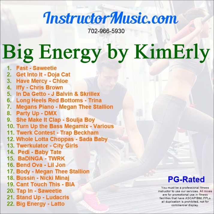 KimErly wanted this custom mix to really get her class going. We took her playlist and went to work making this Bangin’ exercise mix that will have your class sweaten’ their booty off.