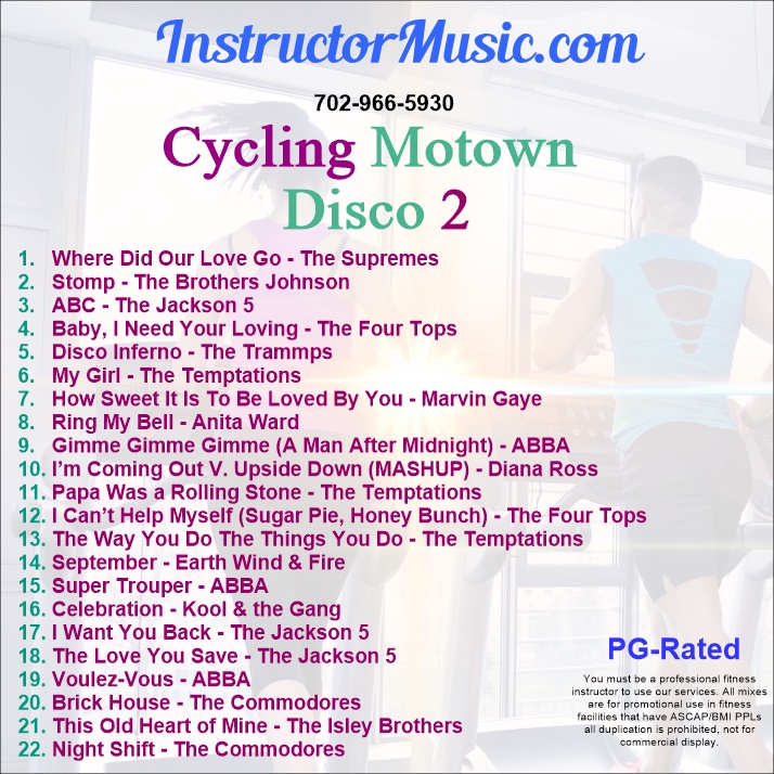 Since it was well received awhile back, we decided to return to the Motown Disco! The latest Cycling workout mix features those Doo-Wop classics from the Motor City along with some beloved disco favorites. Diana Ross and the Supremes kick off things with “Where Did Our Love Go”. From there, we breeze through standards by the Four Tops and The Temptations, as well as dance nuggets from Anita Ward (“Ring My Bell”), The Trammps (“Disco Inferno”) and the Commodores (“Brick House”).
