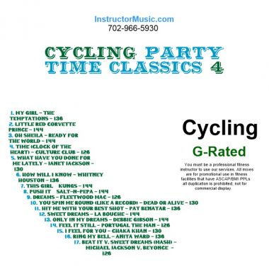 Our wildly popular Party Time Classic mixes get another installment that rocks the roof from beginning to end! Highlights include “My Girl”/The Temptations, “Push It”/Salt-N-Pepa, “You Spin Me Round”/Dead Or Alive and “How Will I Know”/Whitney. There are also plenty of disco classics and rock in the mix like “Ring My Bell”/Anita Ward and “Hit Me With Your Best Shot”/Pat Benatar. This mix is G-Rated.