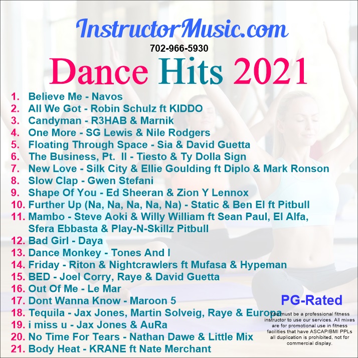 Our DJ’S went to work again and for our newest fitness mix searched all clubs and came up with the hottest dance songs. These hits will be keeping your classes hoppen! We start off with “Believe Me“/Navos, and follow up with “Floating Through Space“/Sia & David Guetta. Oh wait!! there is more, we have also included “Gwen Stefani’s” new song Slow Clap. To keep you grooven there are some Favorites. “Shape Of You”/Ed Sheeran & Zion Y Lennox and “Dance Monkey”/Tones And I. This mix is PG-Rated.