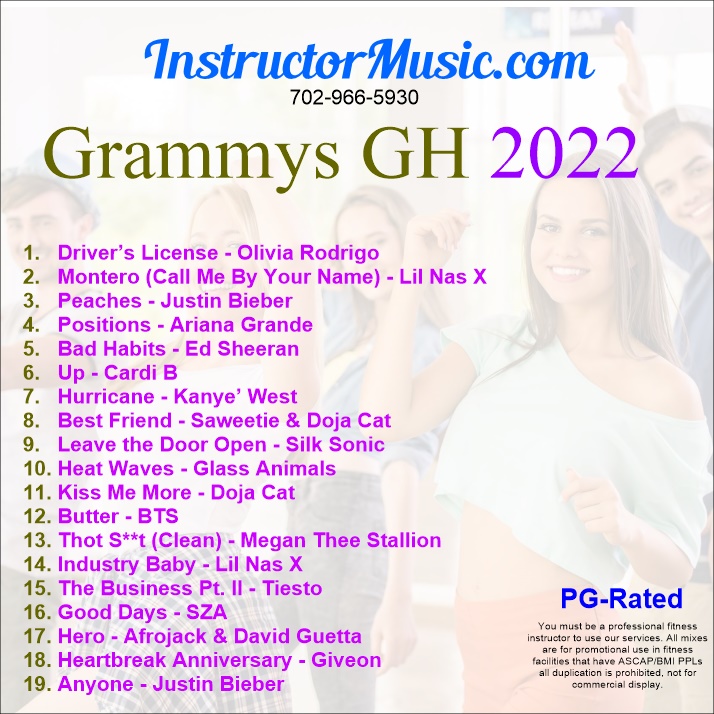 Bieber to Cardi…BTS to Doja Cat…All the Grammy ’22 artists are on the new workout mix. The major category nominations are all featured from beginning to end…No filler, just killer jams! Highlights include Drivers License”/Olivia Rodrigo, “Leave the Door Open”/Silk Sonic, “Heat Waves”/Glass Animals and “Positions”/Ariana Grande.