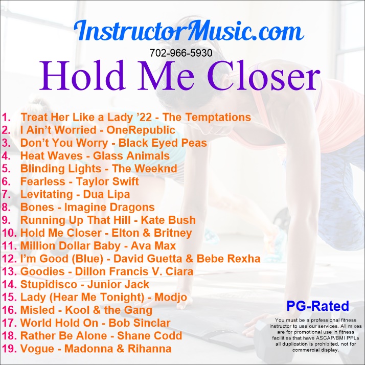 Elton and Britney have a great new Top 40 duet and it’s storming up the pop charts! “Hold Me Closer” features them both sounding better than ever. We gave it prime time exposure in the new workout mix! Other highlights include the new Ava Max track “Million Dollar Baby” and “Running Up That Hill”/KB.