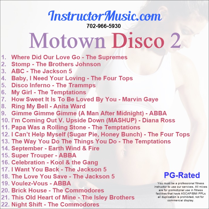 Since it was well received awhile back, we decided to return to the Motown Disco! The latest workout mix features those Doo-Wop classics from the Motor City along with some beloved disco favorites. Diana Ross and the Supremes kick off things with “Where Did Our Love Go”. From there, we breeze through standards by the Four Tops and The Temptations, as well as dance nuggets from Anita Ward (“Ring My Bell”), The Trammps (“Disco Inferno”) and the Commodores (“Brick House”).