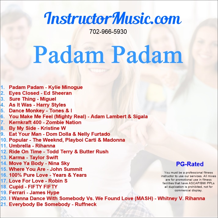 Class fave throwbacks include “Umbrella”/Rihanna, “Move Ya Body”/Nina Sky and “Love For Love”/Robin S. This mix is PG-Rated.