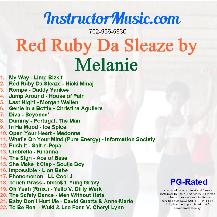 Melanie wanted us to come up with a new workout mix from her eclectic list. She likes retro 80s and 90s but also likes today’s Hip-Hop hits! We took her list back to the lab and came up with a great blend that should work well for any class!