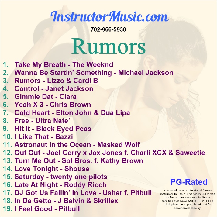 Lizzo teams up with Cardi B for a late summer smasharoo! We feature their track “Rumors” on the new work out mix! Other highlights include “Take My Breath”/The Weeknd, “Hit It”/Black Eyed Peas and the hot duet from Elton and Dua Lipa called “Cold Heart”.