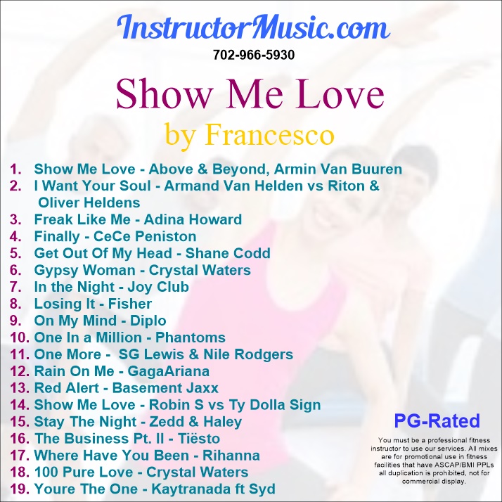 Francesco reached out to us and said, Hey, I need a new mix to get my classes inspired and rocken it. We took his list and put together this inspiring new fitness mix with a flair of Love. We start off with “Show Me Love”/Above & Beyond, Armin Van Buuren and then we hit you up with this fav “Get Out Of My Head“/Shane Codd. To add suspense during the class, we through in “Where Have You Been”/Rihanna and then close out with “Youre The One“/Kaytranada ft Syd. This mix is PG-Rated.